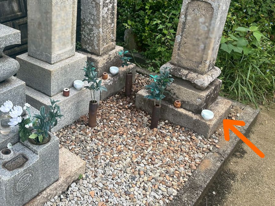 ただ現状は、新たな設置スペースもありませんでした。そのため一番古いお墓1基をお墓じまいしてスペースを作り、そこに新しく墓誌を設置することになりました。印のお墓をお墓じまいし、敷地右手に新たに墓誌を設置します。お見積りを差し上げて、工事をお任せいただきました。
